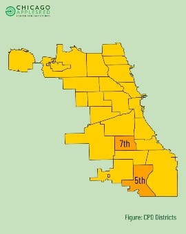 The seventh district includes Gage Park, Auburn Gresham, Chicago Lawn, Englewood, Greater Grand Crossing, and West Englewood. The fifth district is located on the far southeast side of Chicago and includes Roseland, Pullman, West Pullman, Riverdale, Washington Heights, and South Deering. These two districts cover neighborhoods that are over 90% Black.